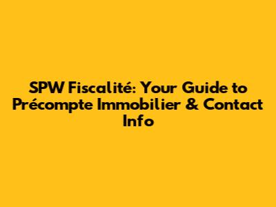 SPW Fiscalité: Your Guide To Précompte Immobilier & Contact Info