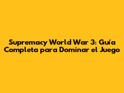 Supremacy World War 3: Guía Completa Para Dominar El Juego